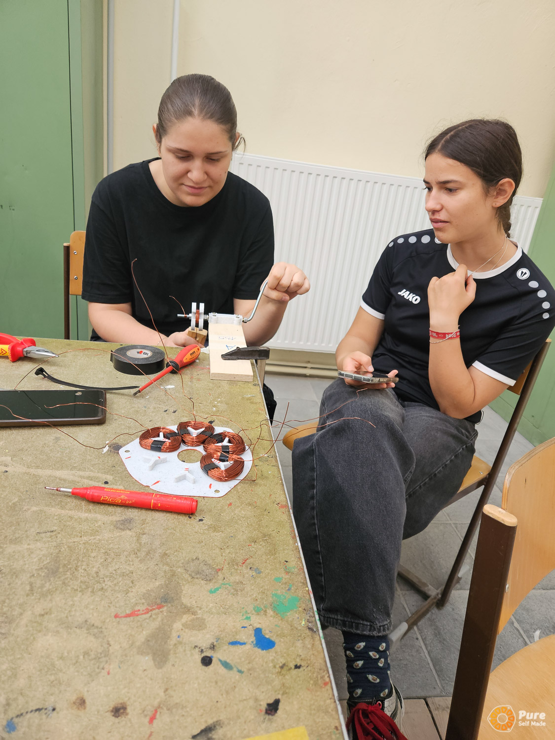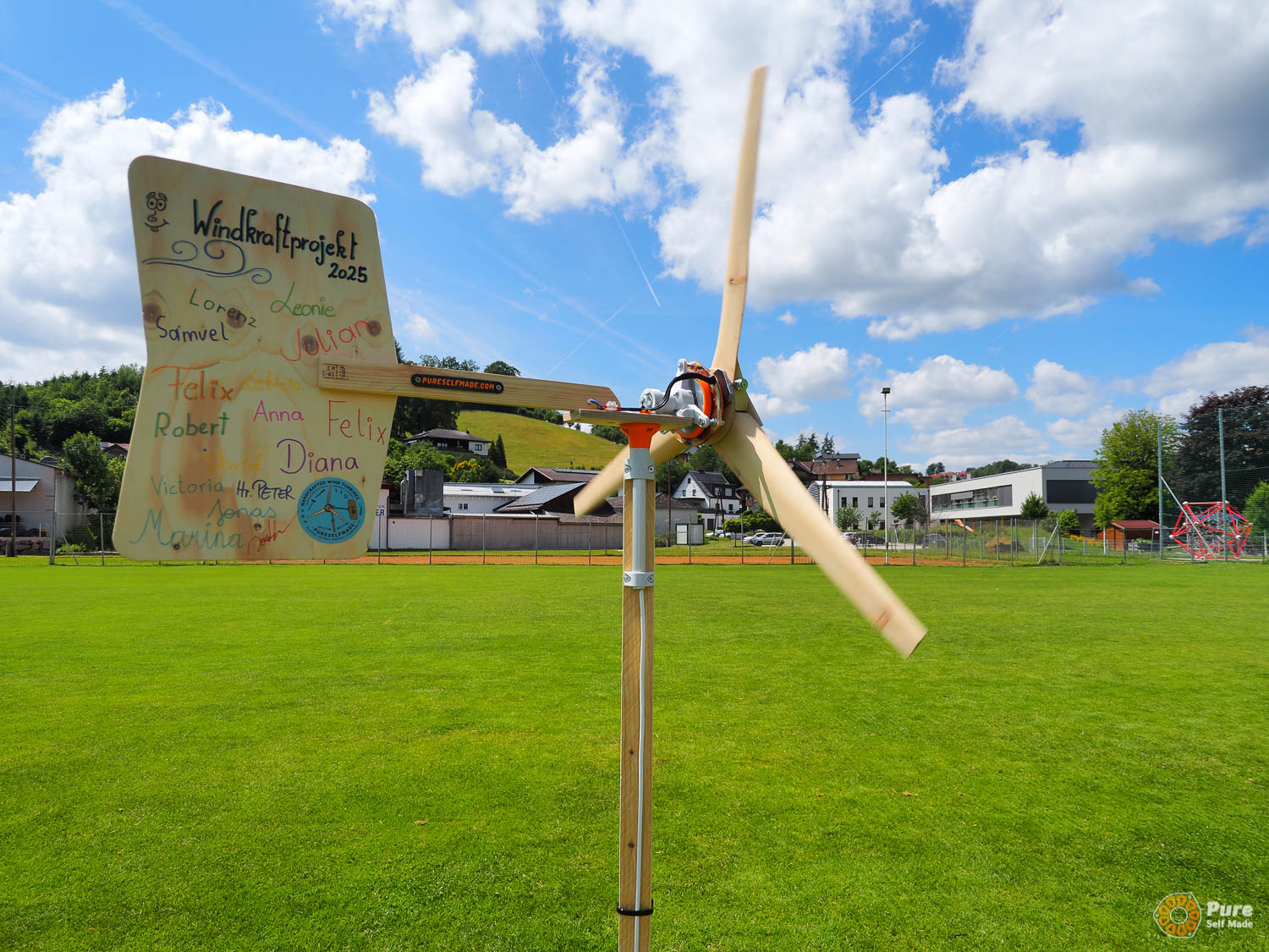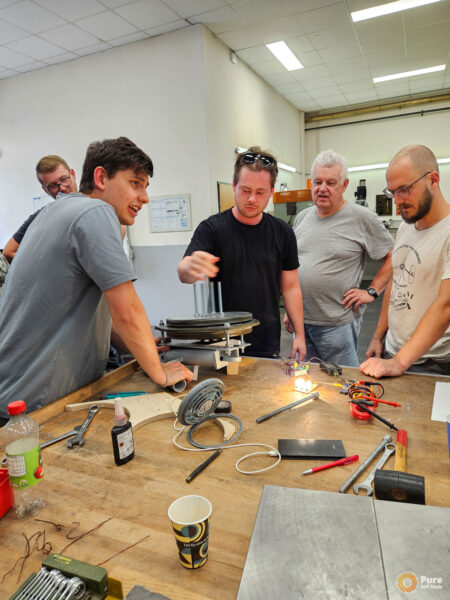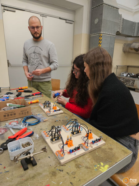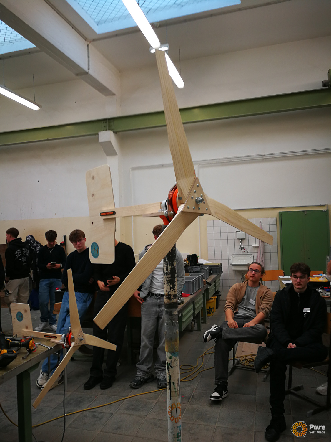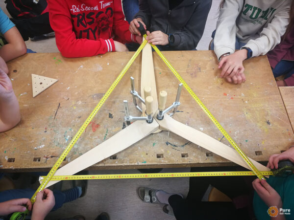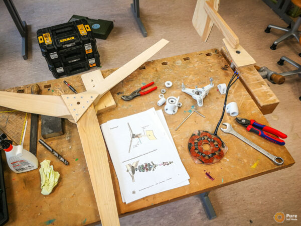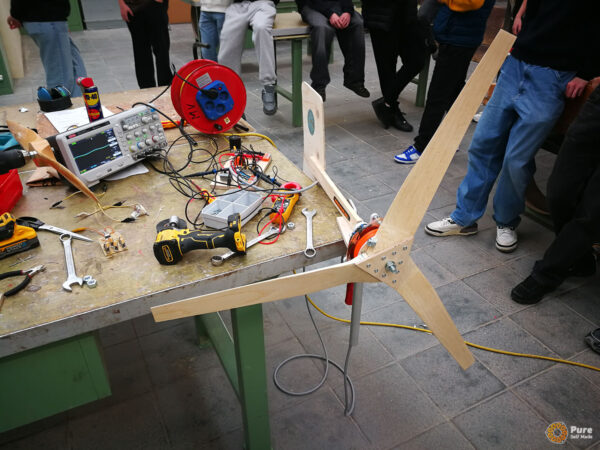In this special school course at HTL St. Pölten, that was part of an Erasmus+ project, we built four micro wind turbines over three days based on our newly developed concept, working with 50 students from five European schools in Austria (St. Pölten), Luxembourg, Croatia, and Germany. This relatively large-scale project required a significant amount of planning, which proved well worth the effort: the workshop was very well received by the school groups. Each school took one of the mini wind turbines back to their home country, where it will continue to be used in the classroom for various experiments. The success of this workshop project gives me great motivation to further refine and expand such workshops with PureSelfMade in the education sector.