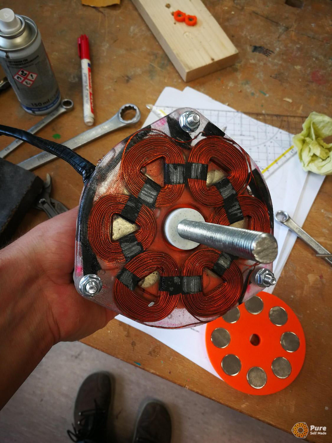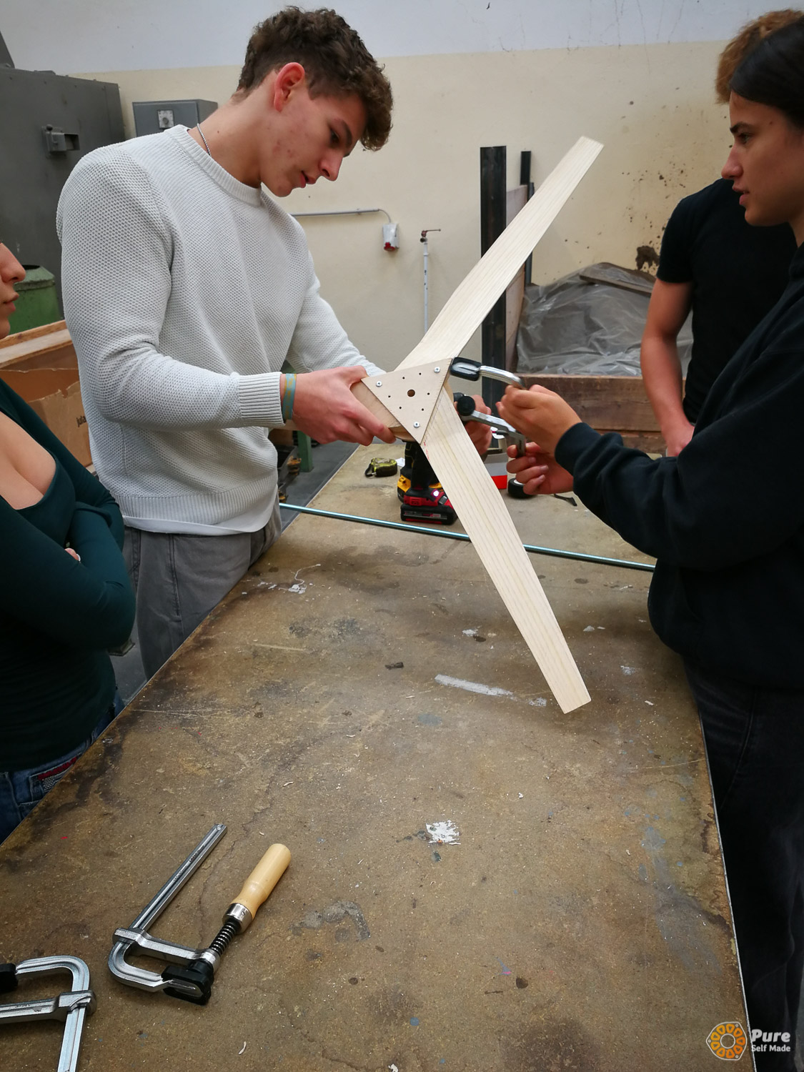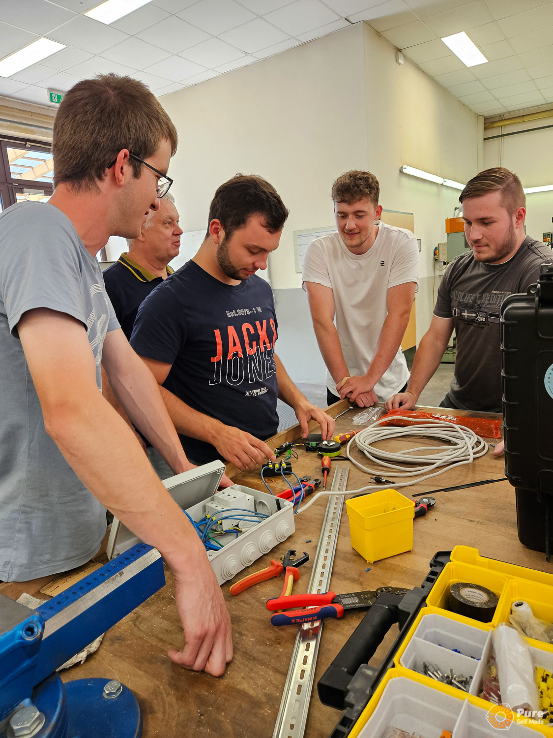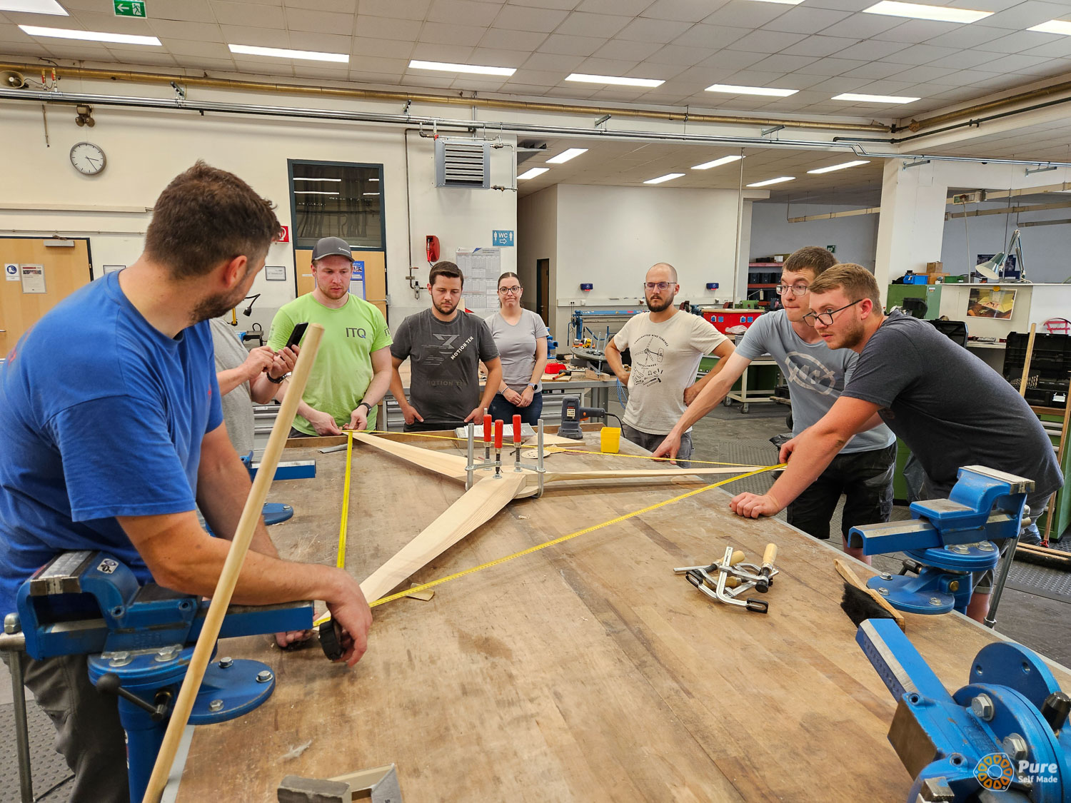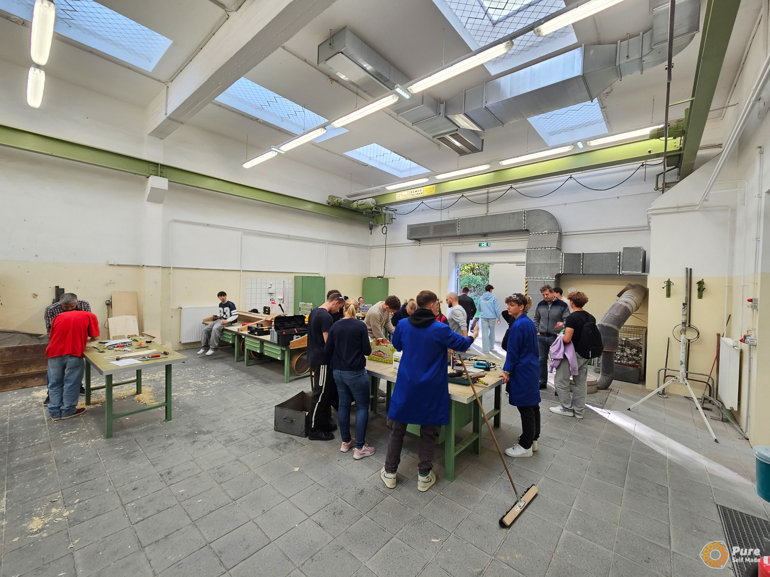 In this special school course at HTL St. Pölten, that was part of an Erasmus+ project, we built four micro wind turbines over three days based on our newly developed concept, working with 50 students from five European schools in Austria (St. Pölten), Luxembourg, Croatia, and Germany. This relatively large-scale project required a significant amount of planning, which proved well worth the effort: the workshop was very well received by the school groups. Each school took one of the mini wind turbines back to their home country, where it will continue to be used in the classroom for various experiments. The success of this workshop project gives me great motivation to further refine and expand such workshops with PureSelfMade in the education sector.