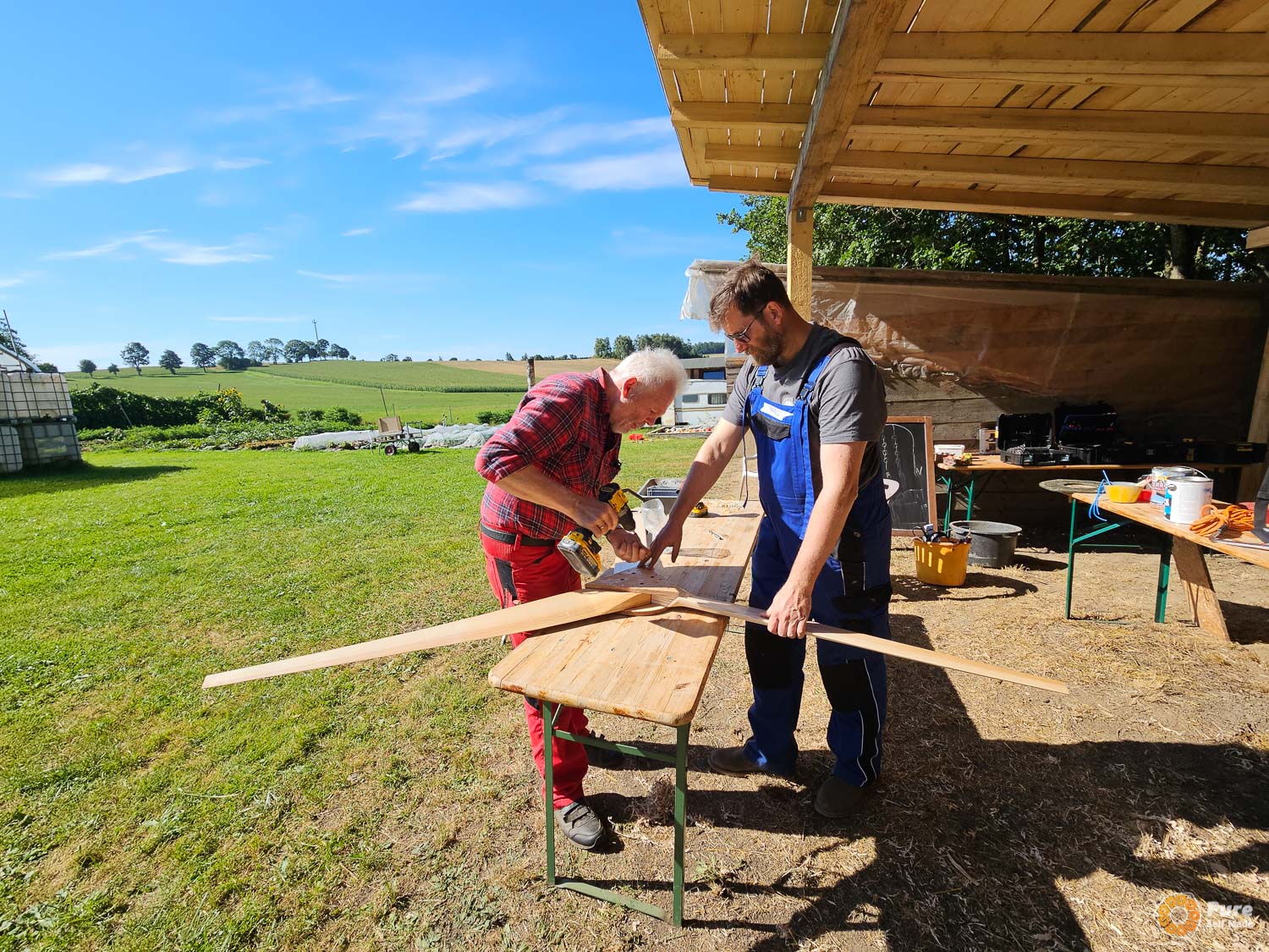 We organized a DIY wind turbine course at Bernd’s farm – a friend and fellow small-scale wind power enthusiast who had already participated in a PureSelfMade course three times before.