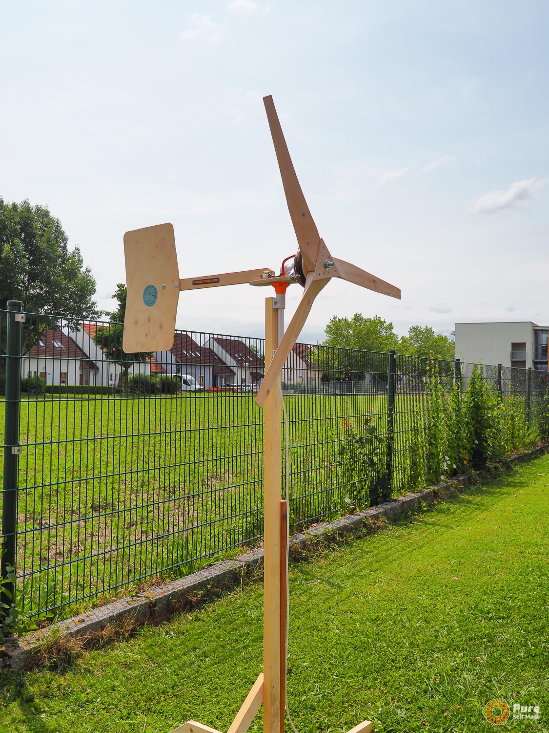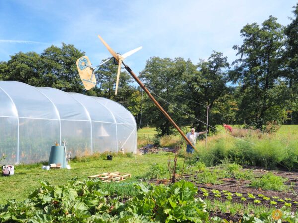 At the end of the workshop, the wind turbine was installed in the large garden . It is connected to the house’s electrical system via a wind turbine inverter. A PV system with an associated battery storage unit will, in the next step, make the house completely self-sufficient.