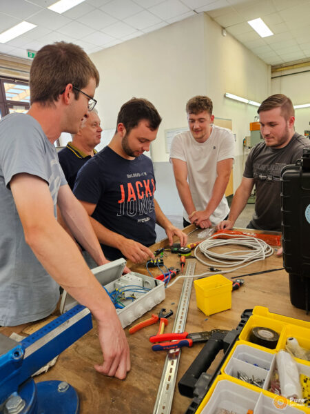 The second course of the autumn tour took place in Hesse, near Frielendorf, at the Kunst- und Werkhof. The conditions there were ideal for such a project. We built a 2.2F wind turbine and a matching tower and ultimately installed the wind turbine on-site in a large meadow behind the farm. The electrical connection was also made via a small wind turbine inverter here. In the future, a PV system and a battery storage unit are also planned for the farm to become as self-sufficient as possible.
