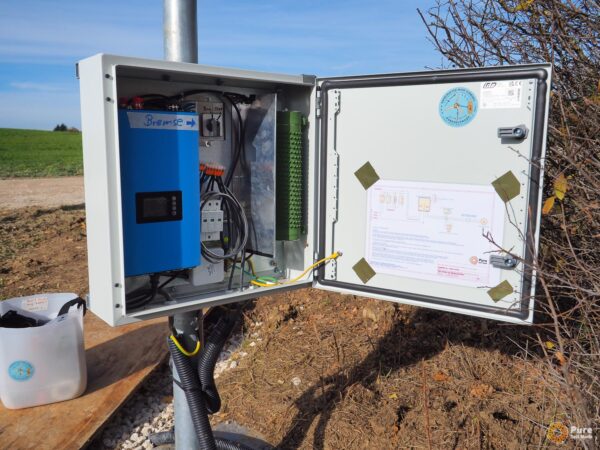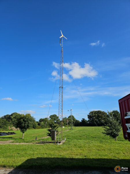 With this large group, we built a 2.2F wind turbine, which we erected on site on a relatively tall tower (18 m). The wind turbine is connected to the house’s PV and storage system via a small wind turbine inverter.