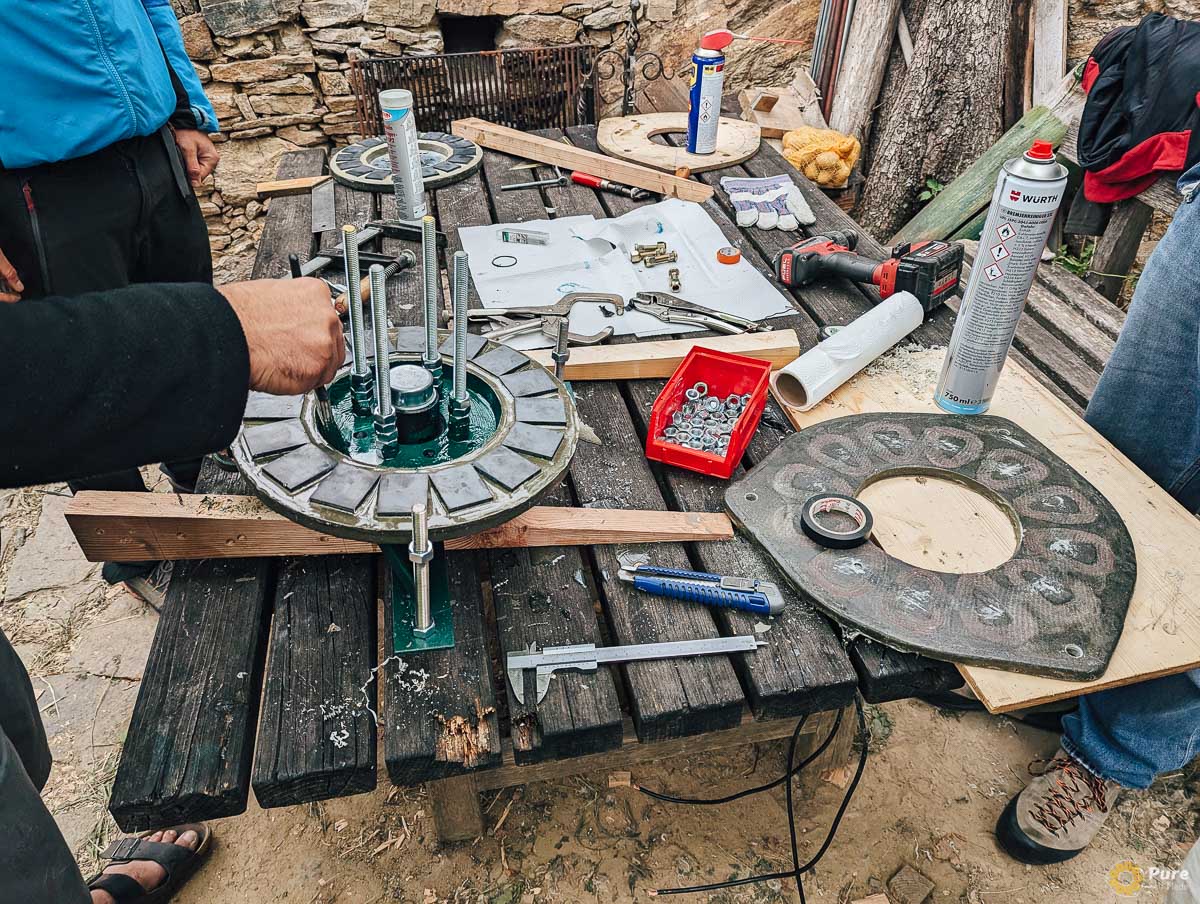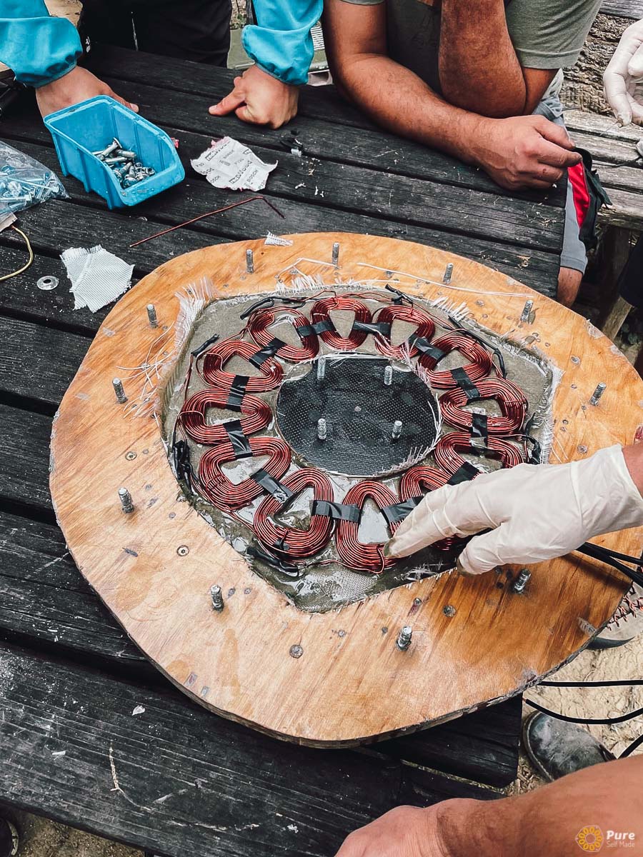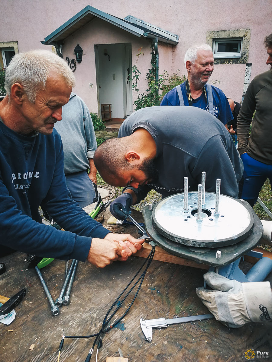 Während des Kurses wurden alle Teile der Windkraftanlage vor Ort gebaut. Wir haben sogar einige neue Konstruktionsansätze und Fertigungstechniken ausprobiert.